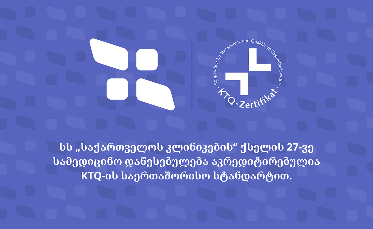 სს „საქართველოს კლინიკებმა“ - რომელიც ჯანდაცვის სექტორის ყველაზე ფართო ჰოსპიტალურ ქსელს წარმოადგენს, წარმატებით გაირა საერთაშორისო აკრედიტაციის პროცესი და დღეის მდგომარეობით ქსელის ყველა სამედიცინო დაწესებულება აკრედიტირებულია. საქართველოს კლინიკების ქსელი, ქვეყნის მასშტაბით 27 სამედიცინო დაწესებულებას აერთიანებს და თბილისსა და საქართველოს თითქმის ყველა რეგიონშია წარმოდგენილი. ქსელმა 2023 წლის ნოემბერში თანამშრომლობა დაიწყო გერმანულ კომპანია KTQ-სთან და შვიდ თვიანი აკრედიტაციის მოსამზადებელი პერიოდი გაიარა. იხილეთ მეტი